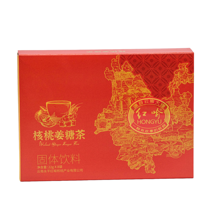 Ceviz Zencefil Ballı Çay, Yongping, Dali, Yunnan'ın altın ceviz üreten bölgesinden doğan, özenle hazırlanmış, ısıtıcı, besleyici bir içecektir. Alçak enlem plato muson iklim bölgesinde yer alan Yongping, ideal bir yıllık ortalama sıcaklığa, bol güneş ışığı saatlerine, önemli gündüz-gece sıcaklık farklarına ve bol miktarda yıllık yağışa sahiptir ve ceviz büyümesi için neredeyse mükemmel doğal koşullar sağlar. Asırlık bir yetiştirme geçmişine sahip, olgun bir yerel ekim yönetim sistemi tarafından desteklenen Yongping cevizleri, ince kabuklu, kalın çekirdekli, saf renkli, dolgun ve sağlam beslenmeye sahip yüksek kaliteli cevizler üretir ve bu zencefil balı çayının ruh bileşeni olarak hizmet eder.